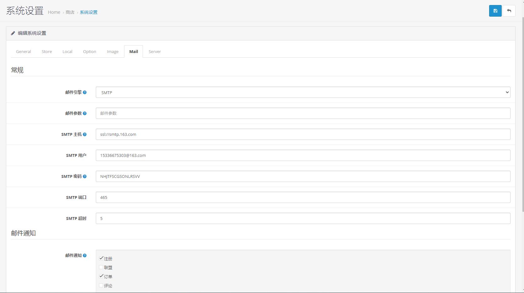 01 SMTP 用户名:填写你的邮箱,此邮箱要与商店中填写的邮箱一致