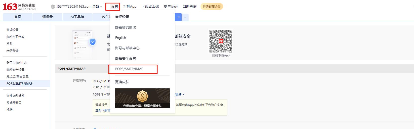 网易邮箱为例,登录邮箱后 点击设置 -> 账户