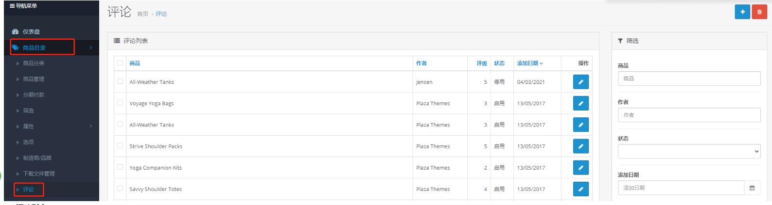 商品目录>评论,如下图所示