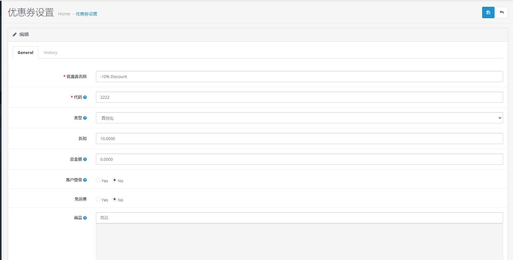 08[商品]:选择可以应用该折扣券的产品,如果没选择任何产品,则适用于所有产品